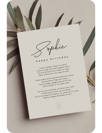 We're passionate about turning bespoke, personalised poems inspired by people you love into beautiful cards, stationery, gifts, speeches and more.